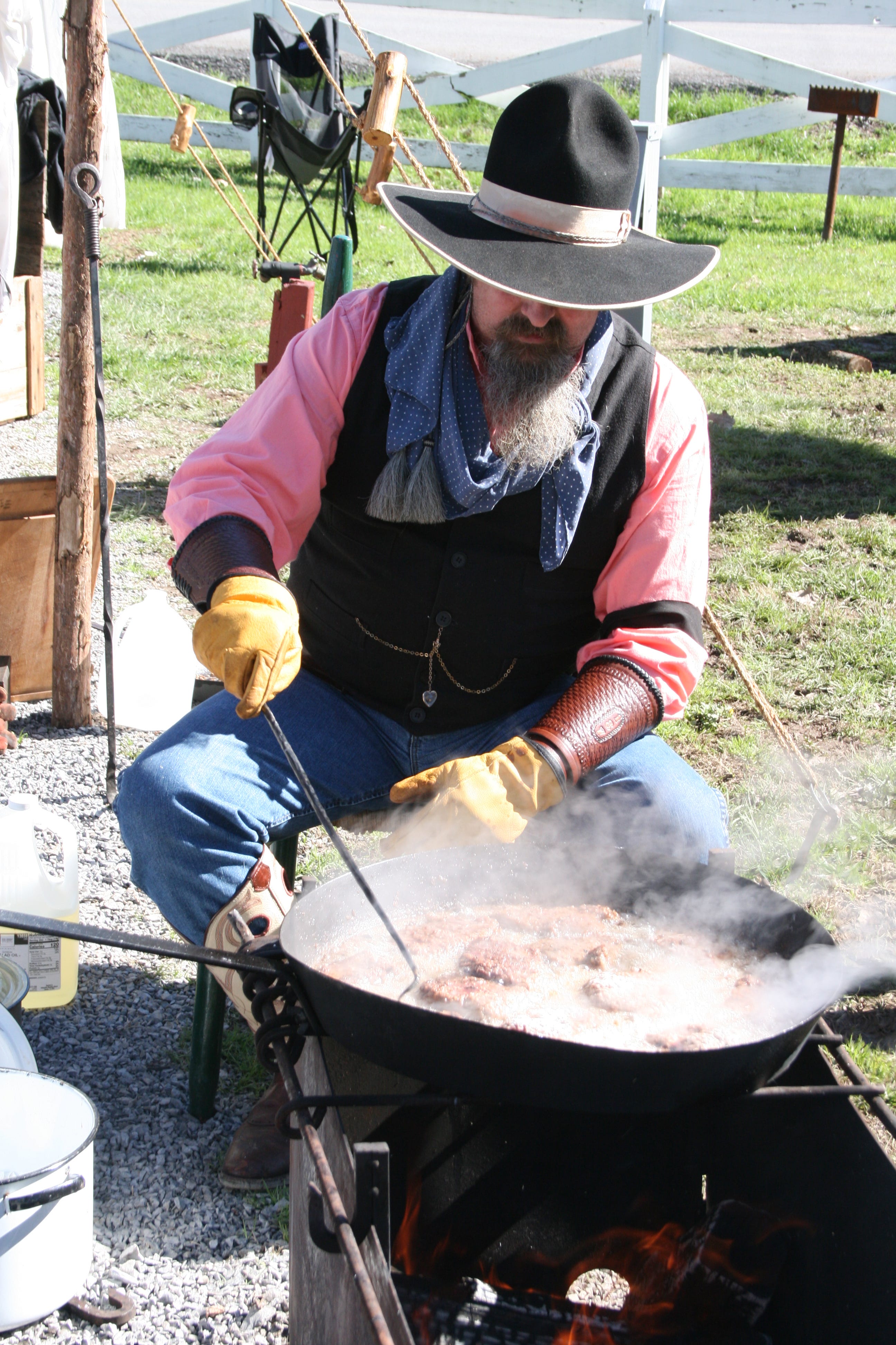 Chuck-wagon cooking is “cooking the way they did in the 1870s through the 1890s,” using period tools and ingredients carried in the wagon.