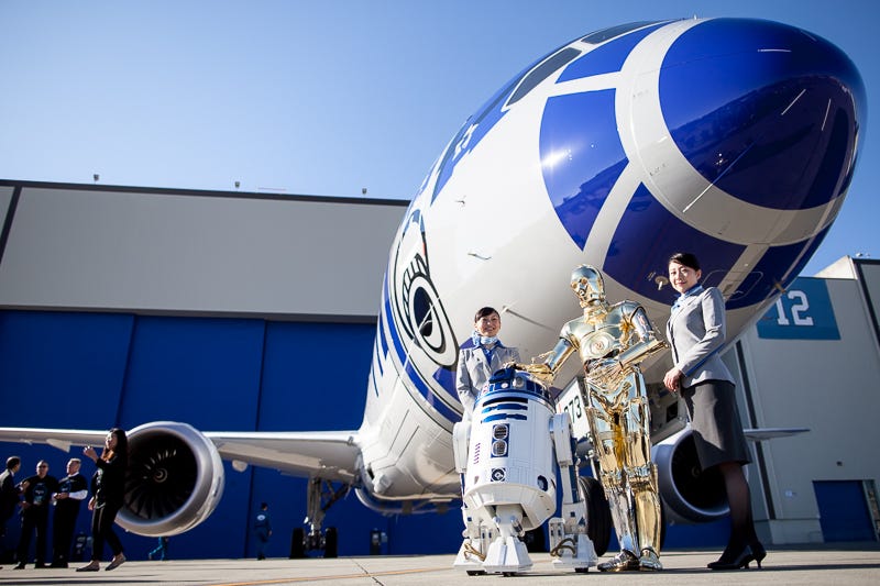 Japanese airline ANA has made a splash by painting four of its Boeing jets with Star Wars-themed designs.
